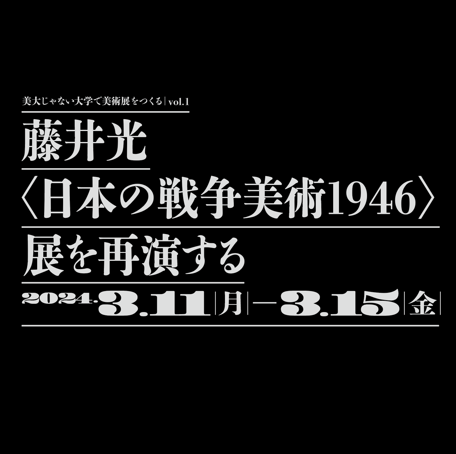 「美大じゃない大学で美術展をつくる」の第一弾として、「藤井光〈日本の戦争美術1946〉展を再演する」を開催します。本展では、藤井光によって2022-23年にかけて発表されたシリーズを紹介します。